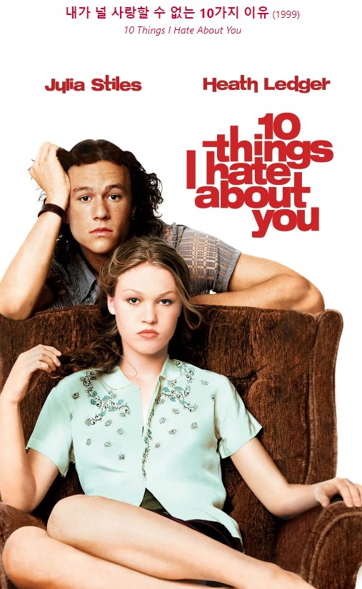 마지막으로 추천하는 영화는 **"내가 널 사랑할 수 없는 10가지 이유(10 Things I Hate About You)"**입니다. 이 영화는 1999년 개봉한 하이틴 무비로 윌리엄 셰익스피어의 희곡 '말괄량이 길들이기'를 영화로 한 고전적인 러브 코미디 영화로, 가족 모두가 함께 보며 즐길 수 있습니다. 톡톡 튀는 대사와 코믹한 상황들은 명절 동안의 즐거움을 한층 더 높여줄 것입니다. 특히, 가족들과 함께 봤을 때 더욱 재미있게 느껴질 수 있는 요소들이 가득합니다.