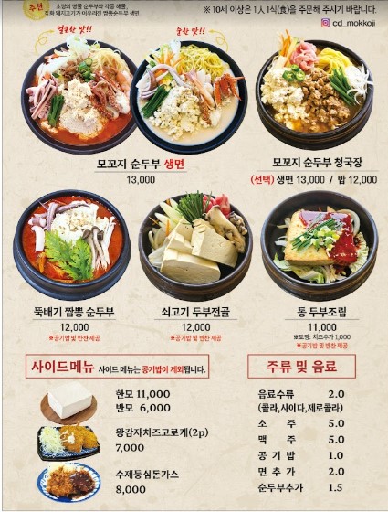저는 3명이 가서 짬뽕순두부와 공깃밥과 모꼬지순두부 생면 순한 맛을 시켰습니다