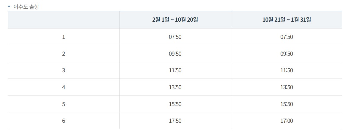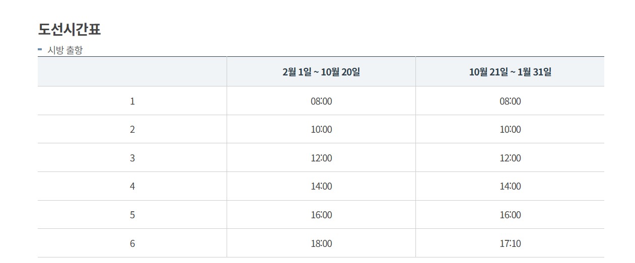 ※ 단, 도선시간표 확인 요망