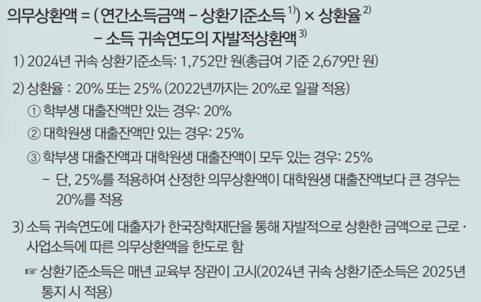 -대출자의 연간소득금액이 상환기준소득을 초과하는 경우 그 초과 금액에 상환율을 적용하여 계산한 금액을 의무적으로 상환해야 합니다
