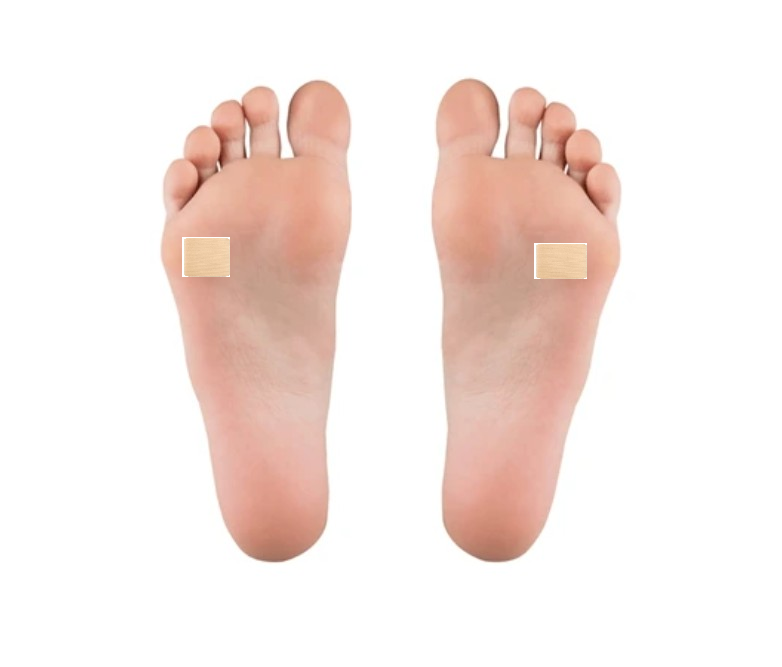 과 발 뒤꿈치 중앙에 붙여 주세요.