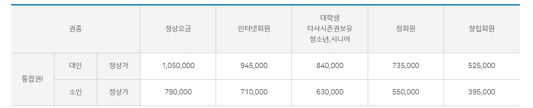 - 통합권 : 2년 연속 30,000원 / 3년 연속 40,000원 / 4년이상 연속 55,000원
