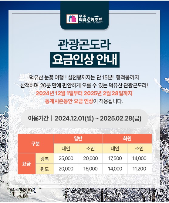 - 메일상담 : ski@deogyusanresort.com