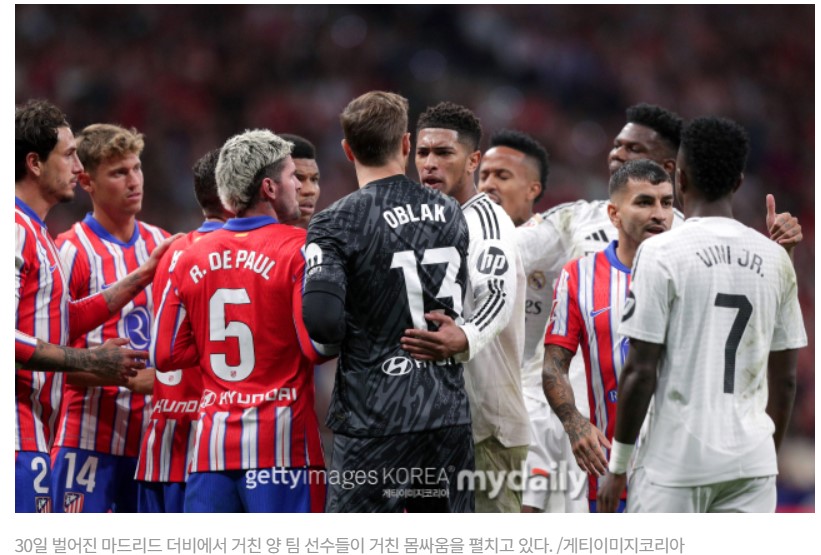 30일 벌어진 '마드리드 더비'에서 무승부 결과가 나왔고 아틀레티코 마드리드와 레알 마드리드는 30일 맞붙어 결국 1:1로 비겼습니다. 후반전에 골을 주고받으며 승점 1씩 획득했고 레알 마드리드가 후반 19분 에데르 밀리탕의 득점으로 장군을 불러 홈 팀 아틀레티코 마드리드가 후반 50분 앙헬 코레아가 극적인 동점골을 터뜨리면서 1:1로 경기가 끝났습니다.