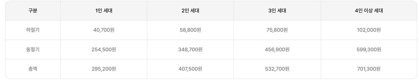 - 세대원 수를 고려하여 세대당 금액을 차등 지급