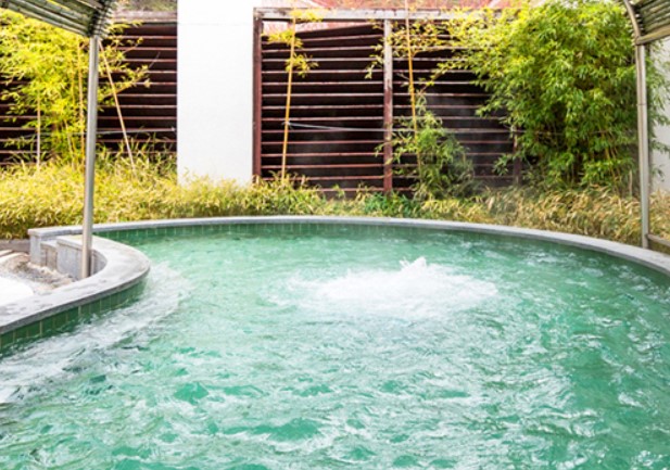 온천수에는 게르마늄, 스트론튬, 황산이온, 칼슘, 리튬 등 20여 종의 총용존고형물을 함유하고 있습니다.