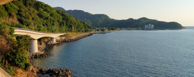 해안선을 따라 걷다 보면 멋진 풍경을 감상할 수 있습니다. 특히, 유명한 카키자키 다리(吊り橋)는 스릴 넘치는 경험을