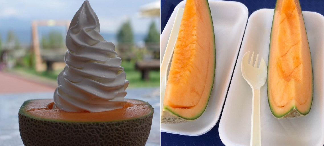 : 반으로 자른 후라노 멜론 위에 아이스크림이 툭!