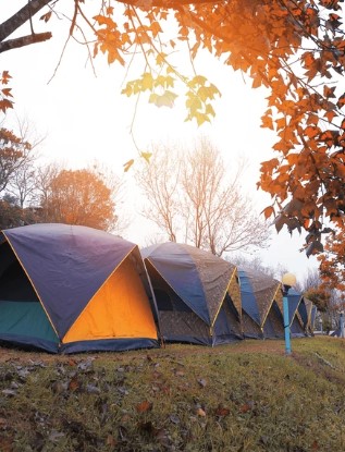 ~텐트: 방수 기능이 뛰어난 3계절용 텐트를 선택하세요. 기온 변화가 심한 가을에는 강한 바람과 추위를 막아줄 튼튼한 텐트가 필수입니다.