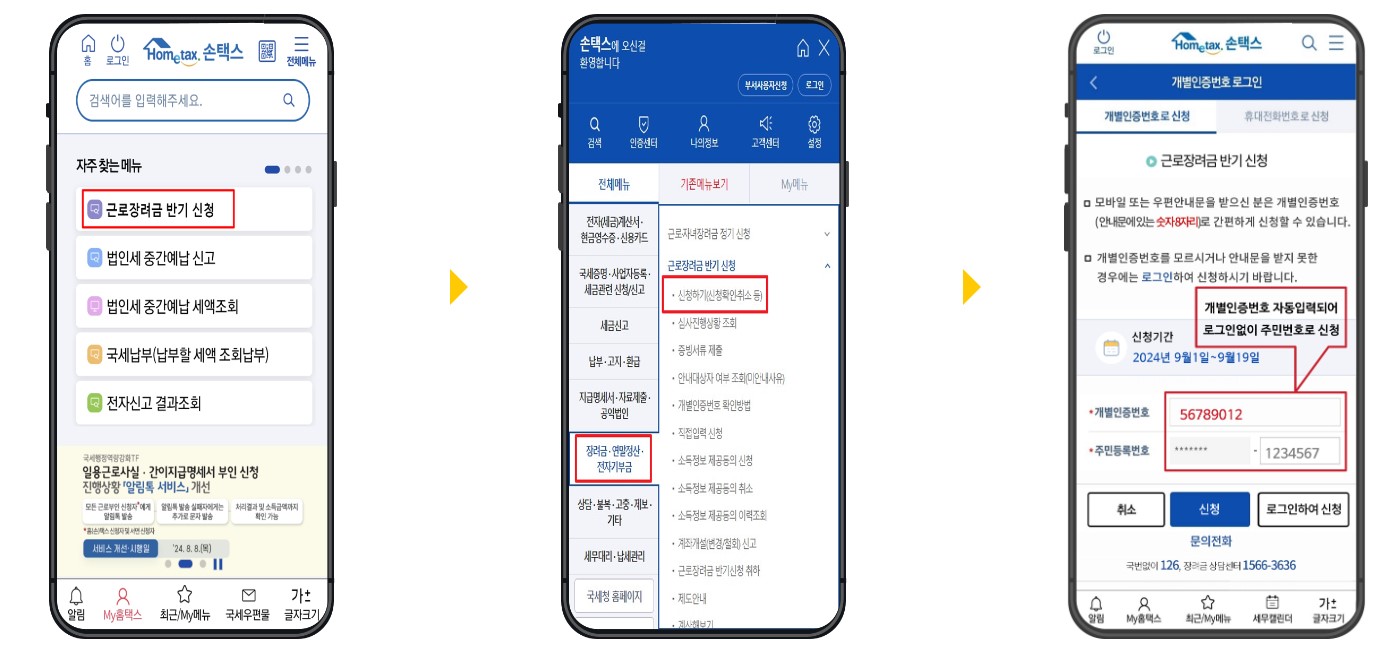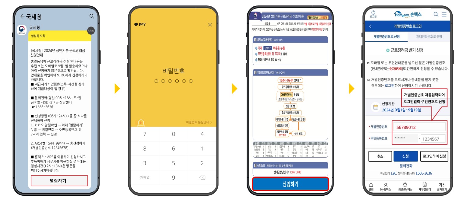개별인증번호는 신청안내문 또는 국세상담센터(126), 장려금 상담센터(1566-3636) 등에서 확인하실 수 있습니다.