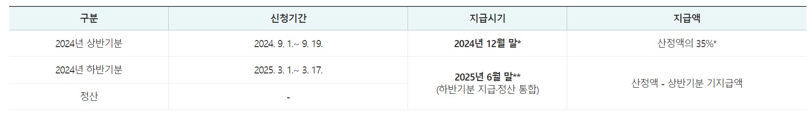 - (상반기분) 2024년 12월 말, (하반기분·정산 통합) 2025년 6월 말