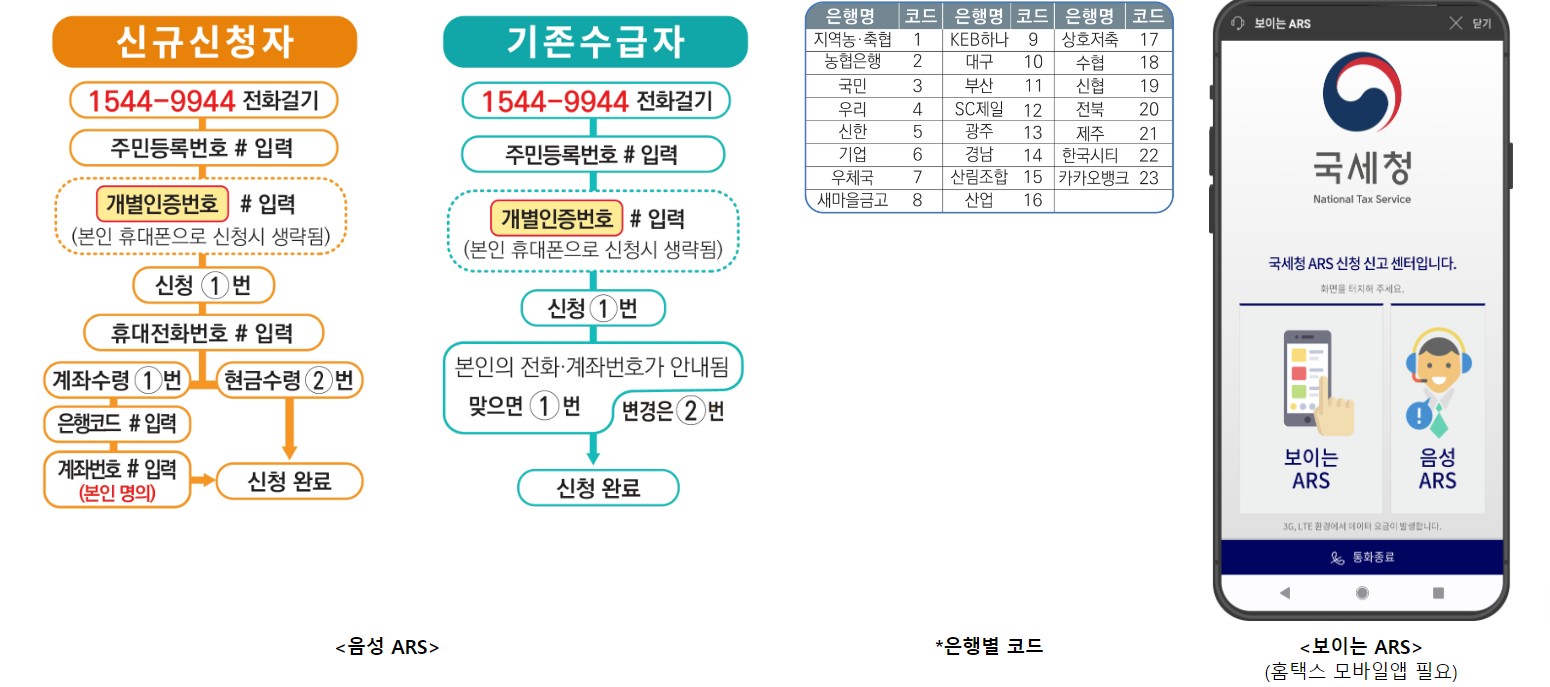→ 전화하여 신청대리 서비스 요청(본인확인 후 신청가능하며 주민등록번호, 지급받을 본인 명의의 계좌번호 등을