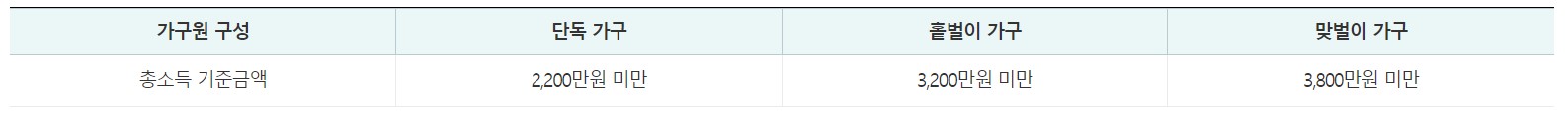 2023년 부부합산 연간 총소득 합계액 및 2024년 부부합산 연간 근로소득* 합계액이 가구원 구성에 따라 정한 아래